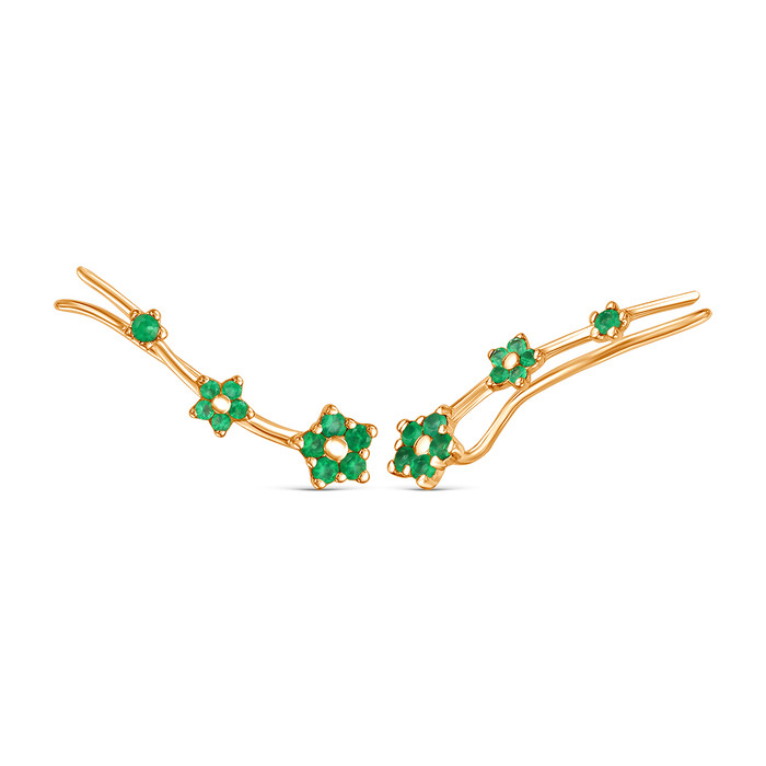Серьги каффы из золочёного серебра с агатом - Цветы М2-019з459
