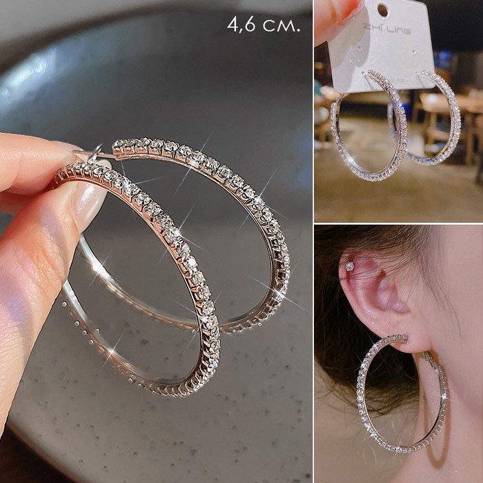 Серьги кольца с сияющими кристаллами 1 пара. Цвет: СЕРЕБРО
