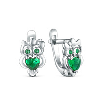Серьги детские из серебра с фианитами цвета изумруд в форме сердца родированные