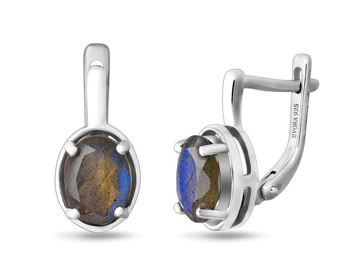 Серьги, арт.656817 Серебро Серебро 925, 3,3 гр., лабрадорит