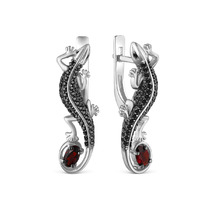 Серьги из серебра с натуральным гранатом и натуральной шпинелью родированные - Я