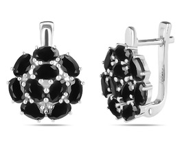 Серьги из серебра с натуральной чёрной шпинелью родированные 925 пробы С-7192р41