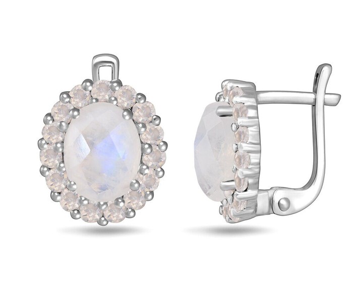 Серьги, арт.656174 Серебро Серебро 925, 5,3 гр., лунный камень