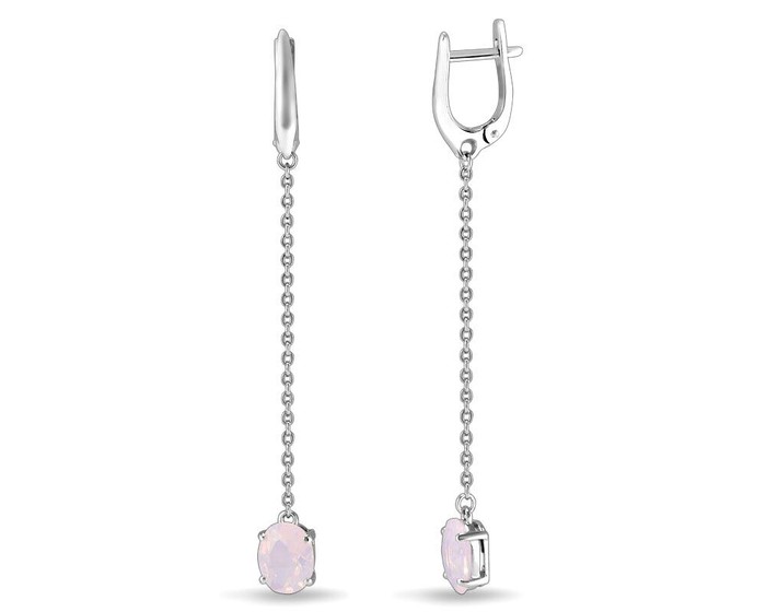 Серьги, арт.653859 Серебро Серебро 925, 3,84 гр., лунный камень розовый