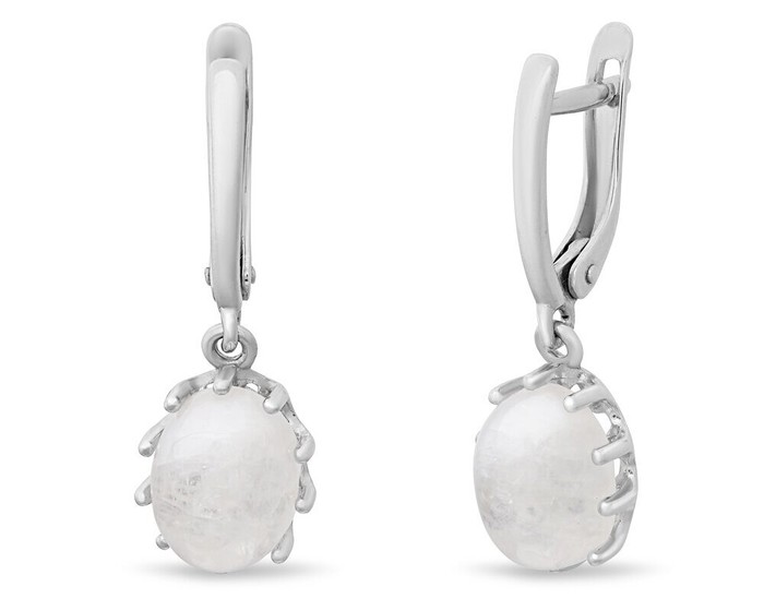 Серьги, арт.656304 Серебро Серебро 925, 3,78 гр., лунный камень