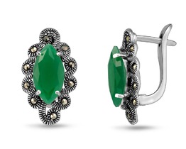 Серьги, марказит , синт.изумруд, SL-AGA1738