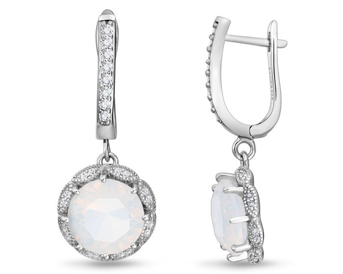 Серьги, арт.655444 Серебро Серебро 925, 6,13 гр., лунный камень выращ.