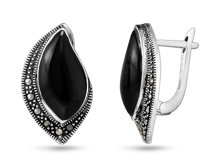 Серьги, арт.655017 Серебро Серебро 925, 7,25 гр., марказит , оникс