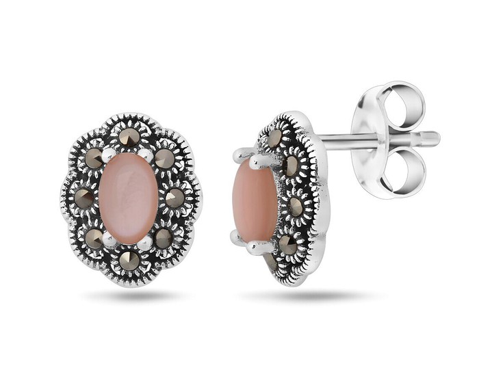Совместные закупки Екатеринбург Ювелирные украшения и бижутерия Серьги — Серьги, марказит , перламутр розовый, SL-LNJ342