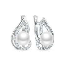 Серьги из серебра с культивированным жемчугом и фианитами родированные 925 пробы