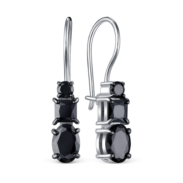 Серьги на петле из серебра с натуральной чёрной шпинелью родированные 925 пробы
