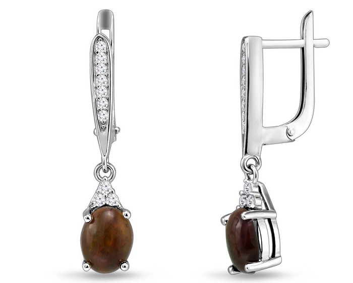 Серьги, арт.655033 Серебро Серебро 925, 3,4 гр., опал нат. черный