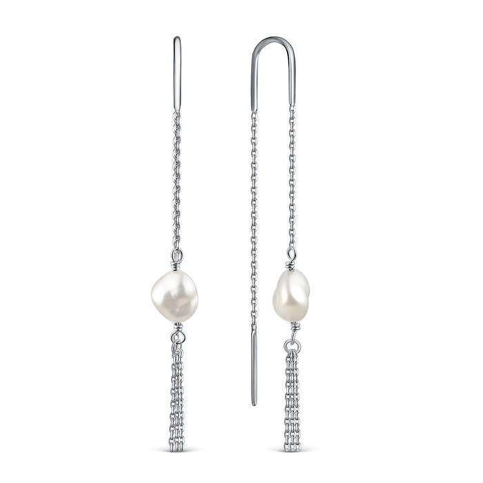 Серьги-продёвки из родированного серебра с культивированным жемчугом барокко 925