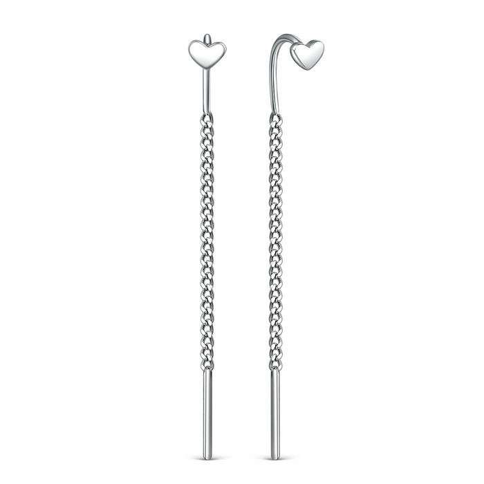 Серьги продёвки из серебра родированные - Сердечки 925 пробы 2-623р