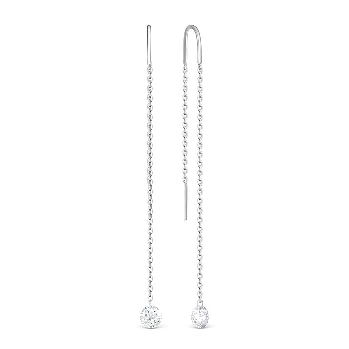 Серьги-продёвки из серебра с фианитами родированные 925 пробы 111014_001