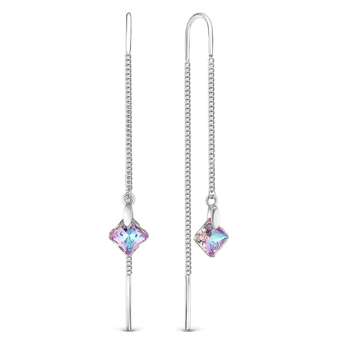 Серьги-продёвки из серебра с кристаллами Премиум Австрия Мистик розовый родирова