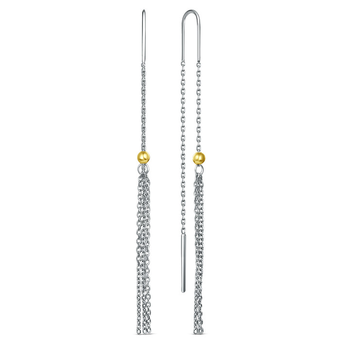 Серьги-продёвки из серебра с золочением родированные 925 пробы 15591RH