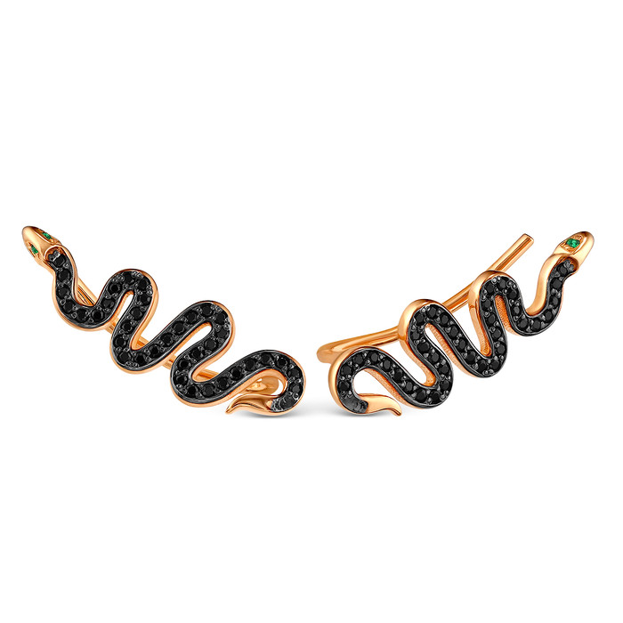 Серьги-продёвки из золочёного серебра с фианитами и родированием - Змейки 925 пр