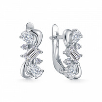 Серьги из серебра с жемчугом Сваровски, пл.кварцем цв.лондон топаз и фианитами р