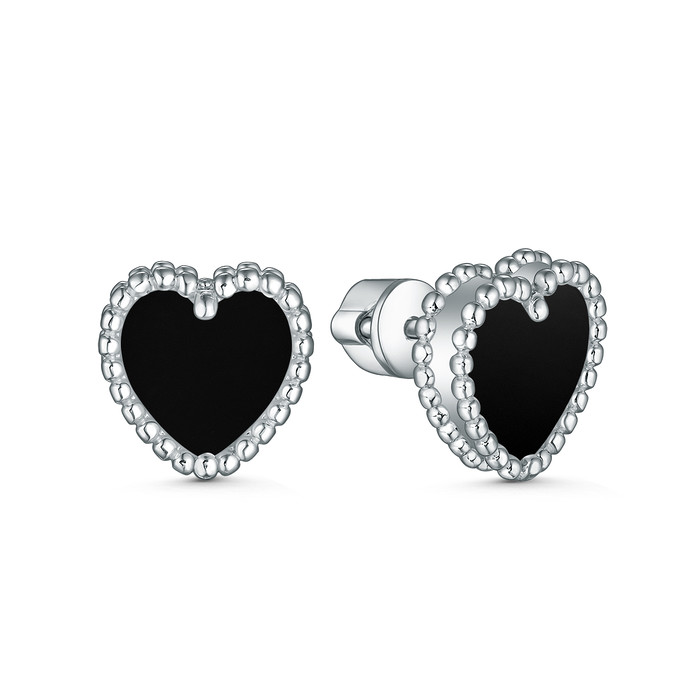 Совместные закупки Екатеринбург Ювелирные украшения и бижутерия Серьги — Серьги-пусеты из серебра с чёрным ониксом родированные - Сердца 2-032р442