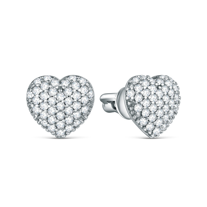 Совместные закупки Екатеринбург Ювелирные украшения и бижутерия Серьги — Серьги-пусеты из серебра с фианитами родированные - Сердца 925 пробы 2-144р200