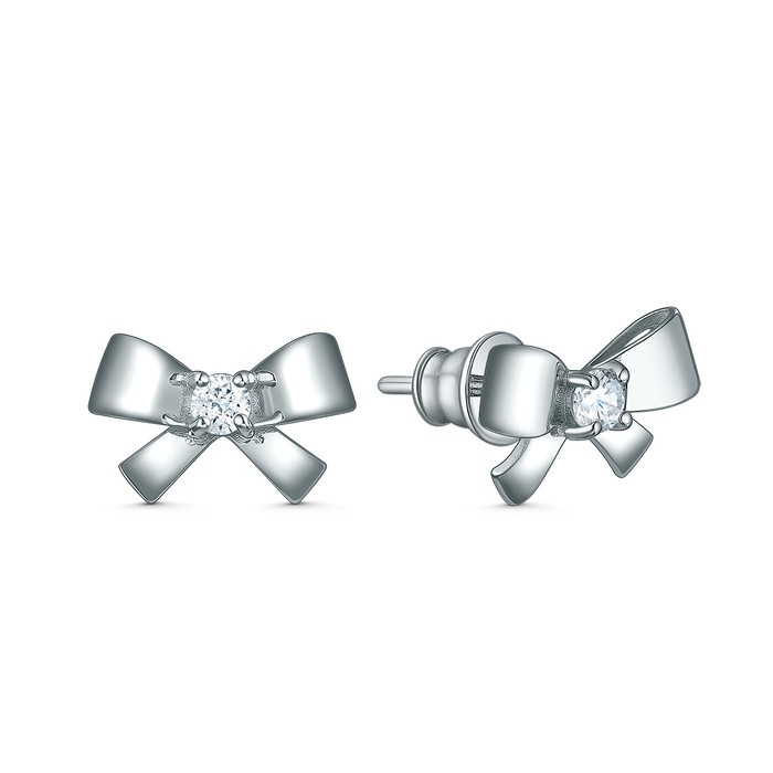 Совместные закупки Екатеринбург Ювелирные украшения и бижутерия Серьги — Серьги-пусеты из серебра с фианитом родированные - Банты 221-10-256-1р