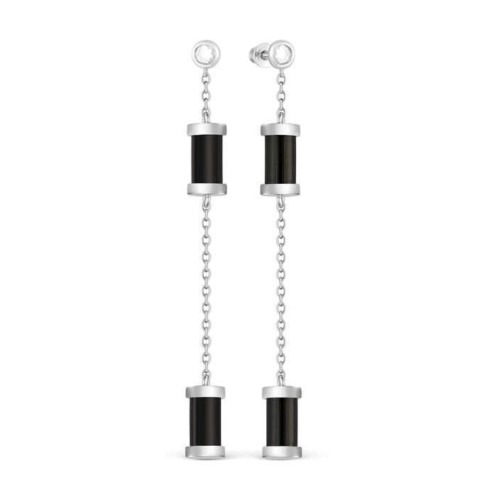 Серьги-пусеты из серебра с керамикой и фианитами родированные 925 пробы TC-E0164