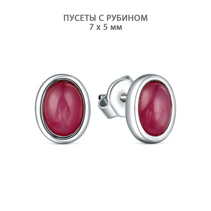 Совместные закупки Екатеринбург Ювелирные украшения и бижутерия Серьги — Серьги-пусеты из серебра с рубином родированные 925 пробы GTE-201-PR