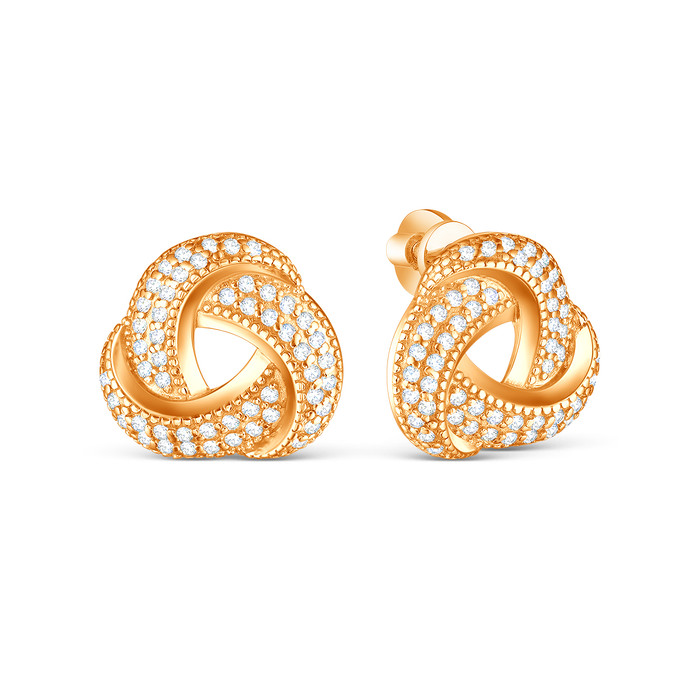 Совместные закупки Екатеринбург Ювелирные украшения и бижутерия Серьги — Серьги-пусеты из золочёного серебра с фианитами 925 пробы 42-0714з
