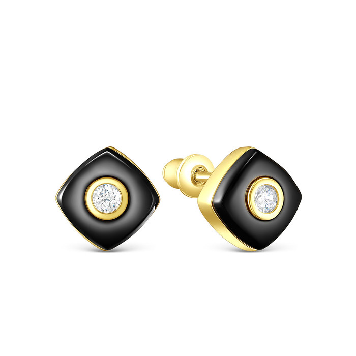 Совместные закупки Екатеринбург Ювелирные украшения и бижутерия Серьги — Серьги-пусеты из золочёного серебра с керамикой и фианитами 925 пробы TC-E01144-