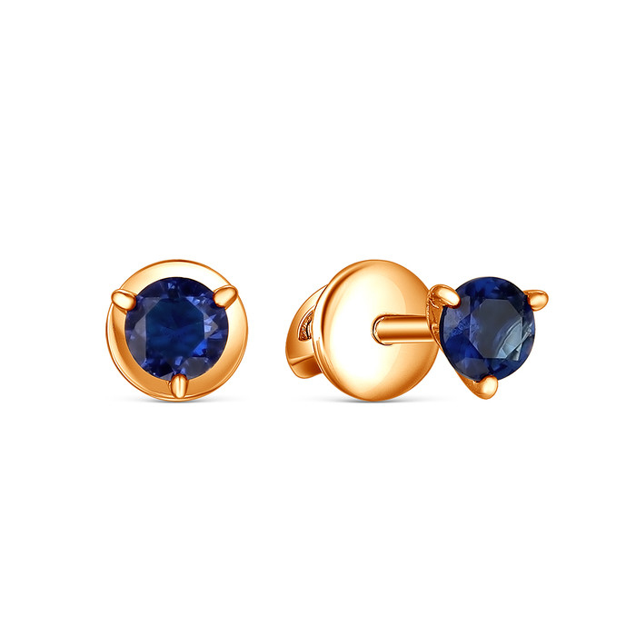 Серьги-пусеты из золочёного серебра с кварцем цвета сапфир п6-646з208