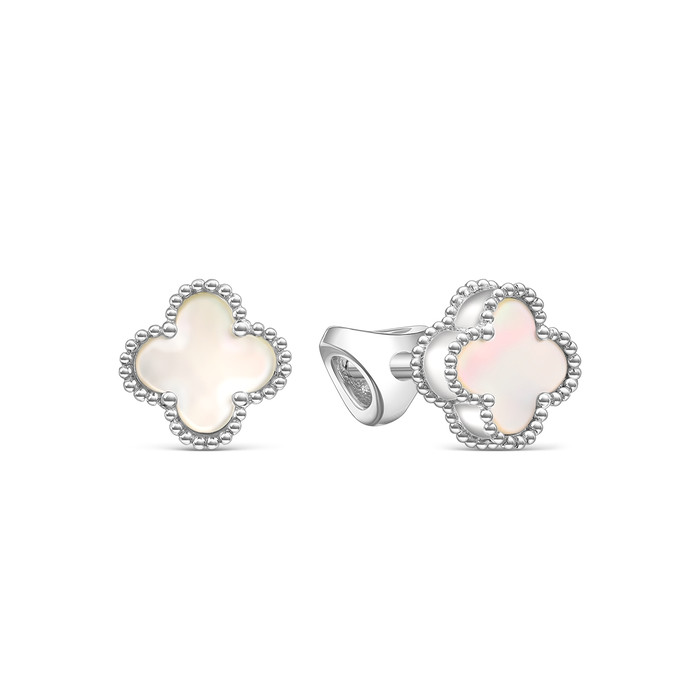 Совместные закупки Екатеринбург Ювелирные украшения и бижутерия Серьги — Серьги-пусеты Клевер Четырехлистник из серебра с белым перламутром родированные