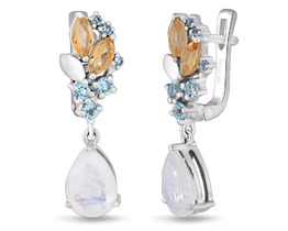 Серьги, лунный камень , топаз , цитрин , нанотопаз, Алия