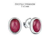 Серьги-пусеты из серебра с рубином родированные 925 пробы GTE-201-PR