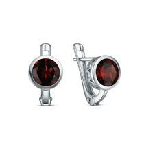 Серьги из серебра с гранатом родированные 925 пробы GTE-3366-G