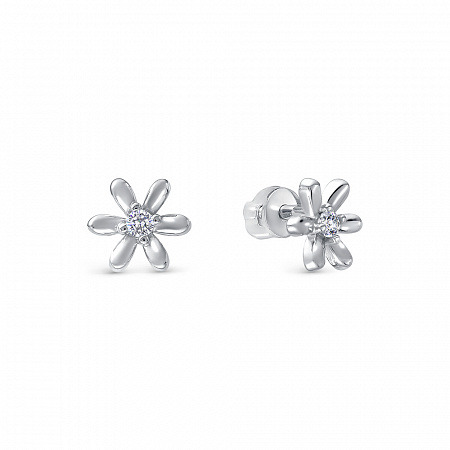 Серьги с фианитом родированные серебро 925*