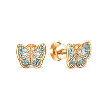 Серьги-пусеты из золочёного серебра с фианитами и родированием - Бабочки 925 про