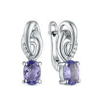 Серьги из серебра с танзанитом и кубическим цирконием родированные 925 пробы GTE