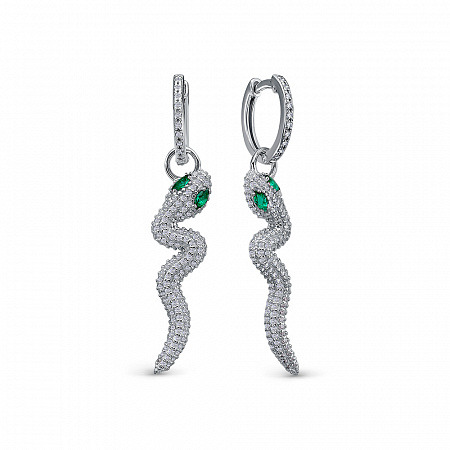 Серьги с фианитом родированные серебро 925*
