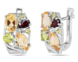 Серьги в форме клевера из серебра с фианитами родированные 925 пробы 04-302-0251