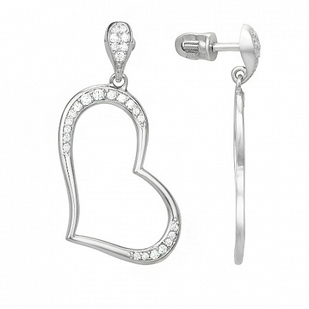 Серьги с фианитом родированные серебро 925*