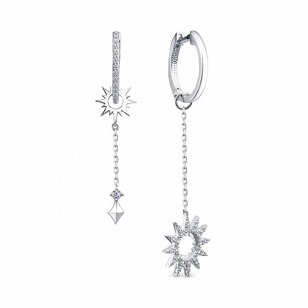 Серьги с фианитом родированные серебро 925*