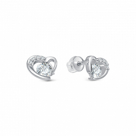 Серьги с фианитом родированные серебро 925*