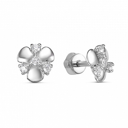 Серьги с фианитом родированные серебро 925*
