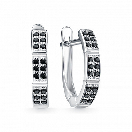 Серьги с фианитом родированные серебро 925*