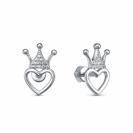 Серьги с фианитом родированные серебро 925*
