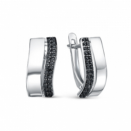 Серьги с фианитом родированные серебро 925*