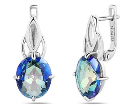 Серьги-пусеты длинные в форме клевер из серебра с камнем оникс коллекция Clover
