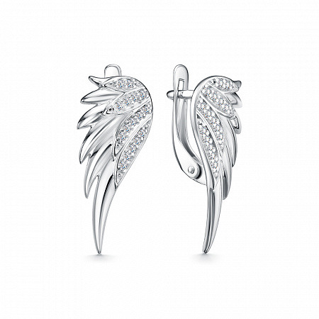 Серьги с фианитом родированные серебро 925*