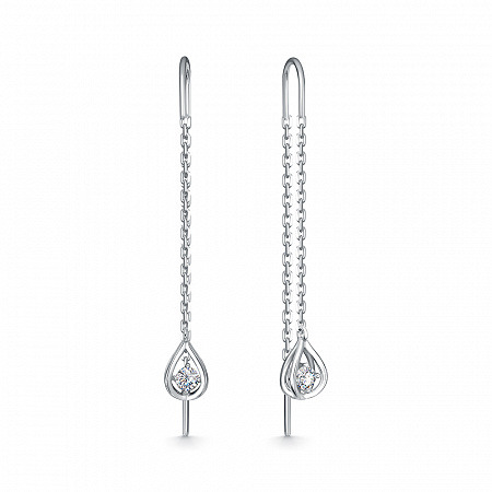 Серьги с фианитом родированные серебро 925*